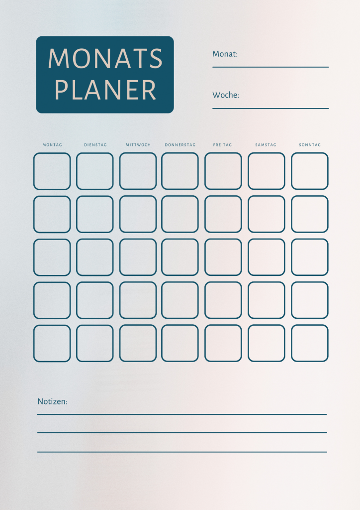 Mit dem Monatsplaner kannst du übersichtlich deinen Monat planen und hast jeden Tag im Blick.