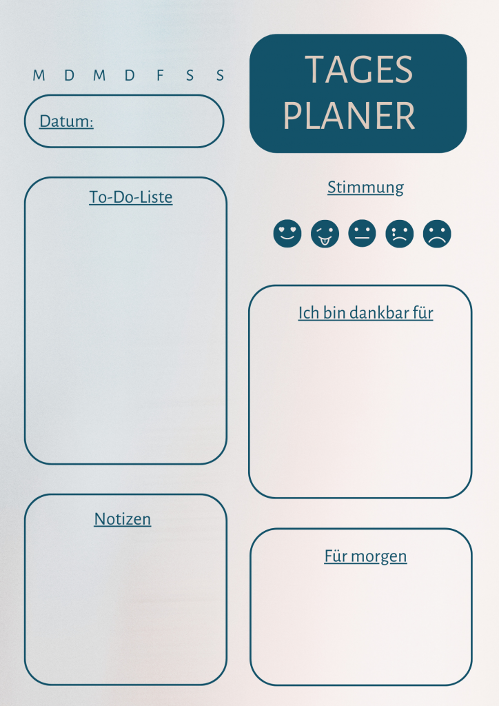 - deine täglichen Planungen für jeden Wochentag