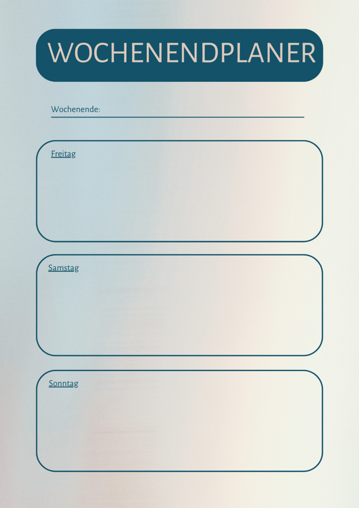 Mit dem Wochenendplaner kannst du ausführlich dein Wochenende planen. Die großen Felder laden zu einer übersichtlichen Darstellung ein.