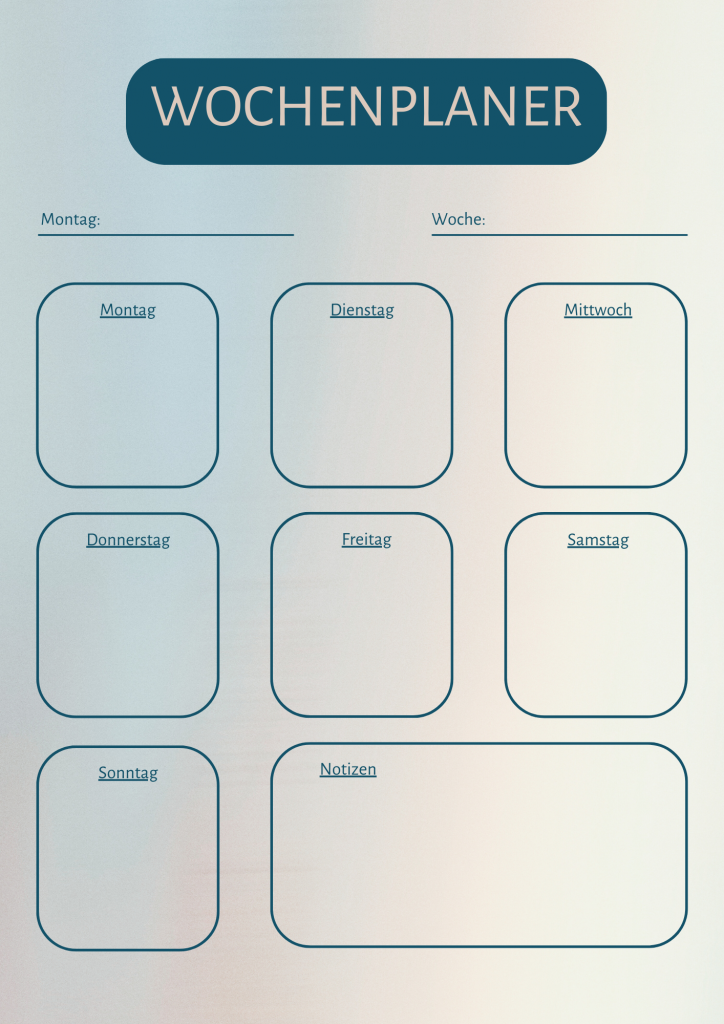 Mit dem Wochenplaner kannst du übersichtlich deine Woche planen und hast deine ganze Woche im Überblick.